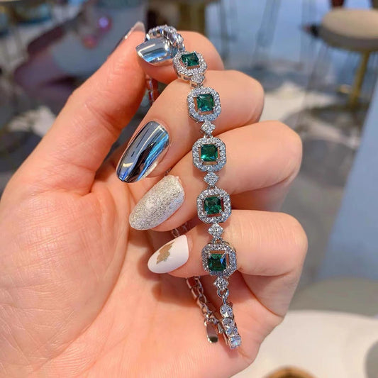 European & American Luxury Tourmaline Princess Square Bracelet 💎 Colorful Diamond Simulation Copper Plated Women's Fashion Jewelry