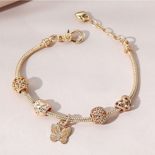 ✨Butterfly Heart Pendant Bracelet – Adjustable Gold Charm Jewelry✨