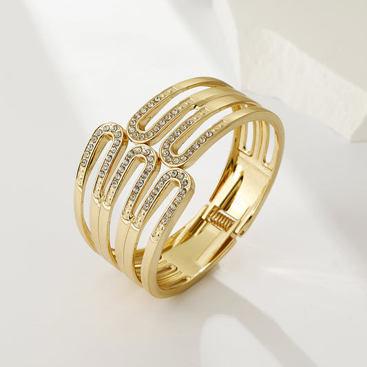 Hollow Alloy Bracelet | Asymmetrical Diamond-Encrusted Ring Stacking Design | Elegant High-End Bangle for Women